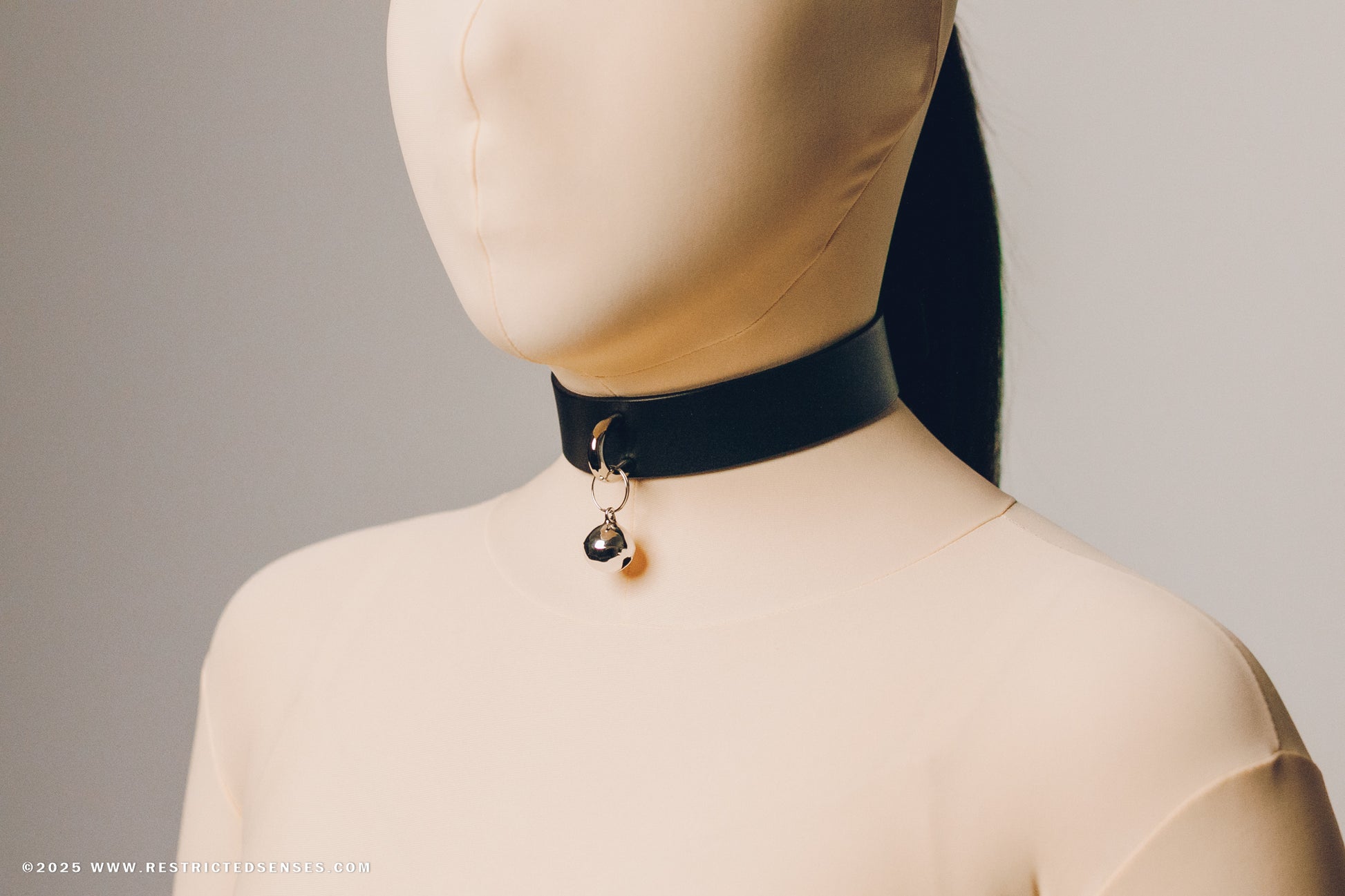 A comfortable lockable collar with locking post and attached bell, hear your subs every movement!