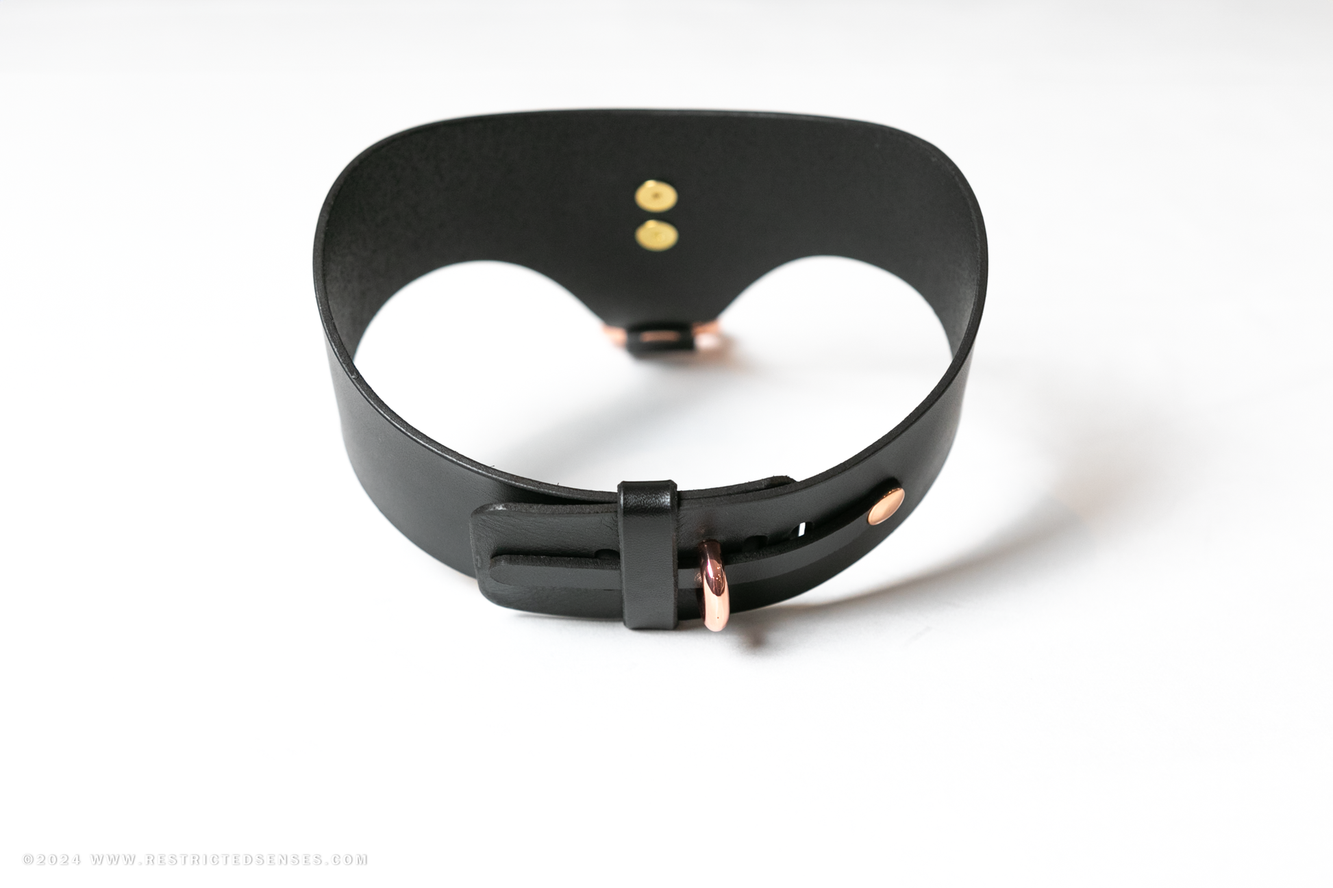 This precision Laser CNC Cut Collar is contour shaped to drape around the neck in a natural manner, simple, elegant and low profile. The design makes it lockable via a padlock (not included), or securing the collar via a strap which passes through the locking bridge and will stay put this way. A classic design, while also elegant and minimalist this collar is made from an approximately 2.2mm premium genuine Italian leather hide.
